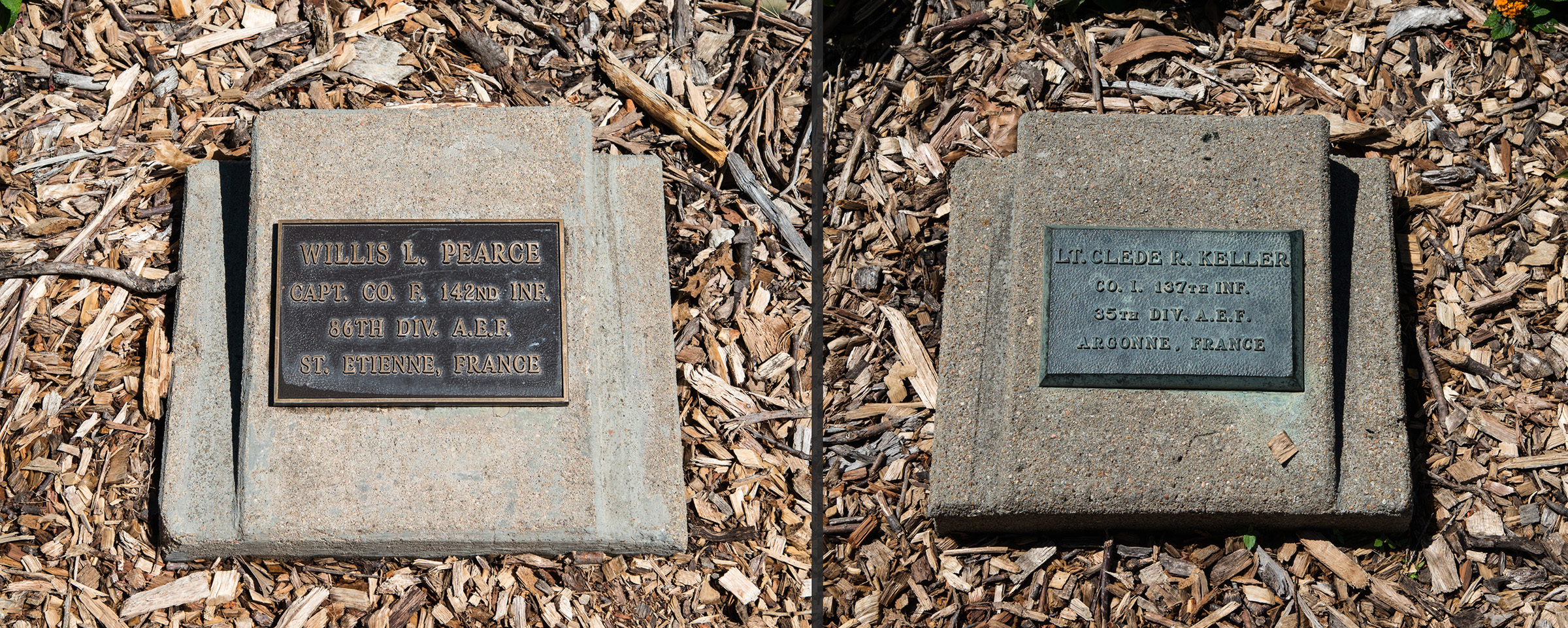 The American Legion in Manhattan is named for two local veterans who died in France while fighting as part of the American Expeditionary Force during the First World War: Lieutenant Clede R. Keller and Captain Willis L. Pearce. Both men are honored with plaques located at the entrance the City Park's Rose Garden. Click on the image to the right to view their plaques.